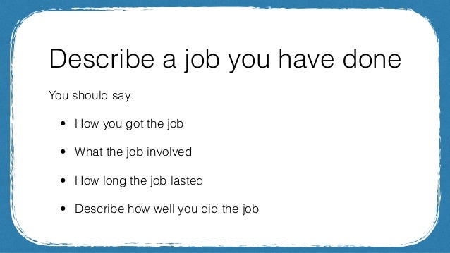 Halo, thanks for visiting this url to look for sample ielts speaking about job. I am hoping the information that appears may be beneficial to you